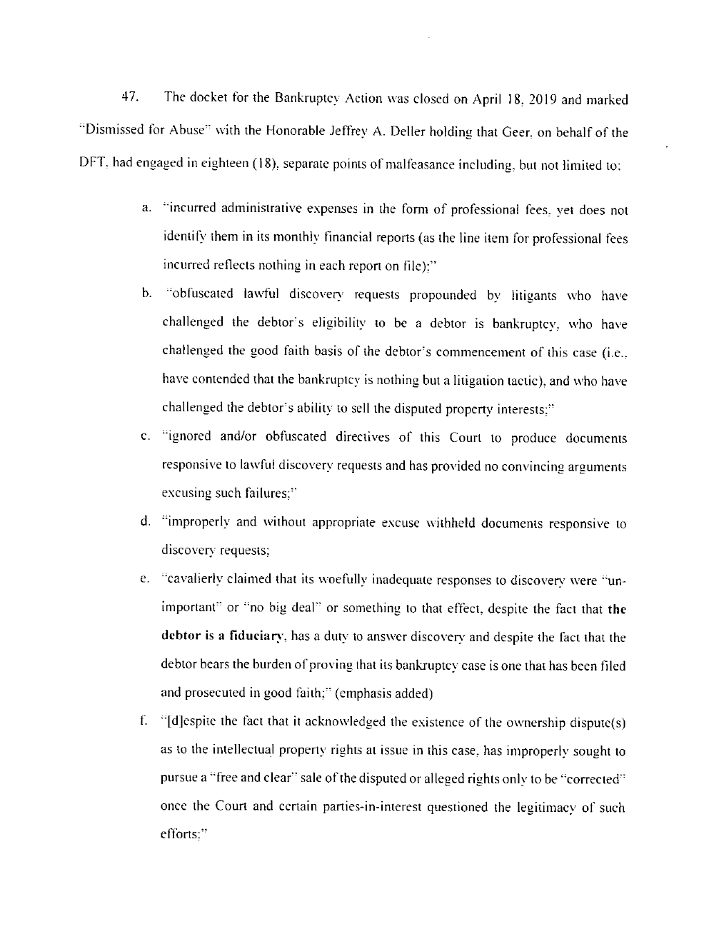 After 16 months of lies and deceit Judge throws case out of bankruptcy court. Geer Herman to face consequences.